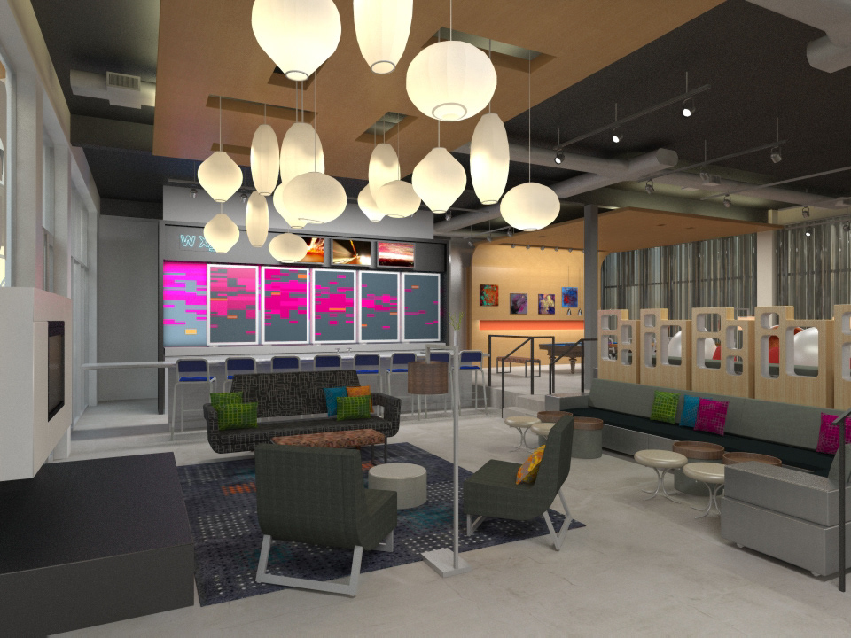 A series of brand appropriate abstract animations that would run in various parts of the hotel. Updated seasonally and for the holidays.